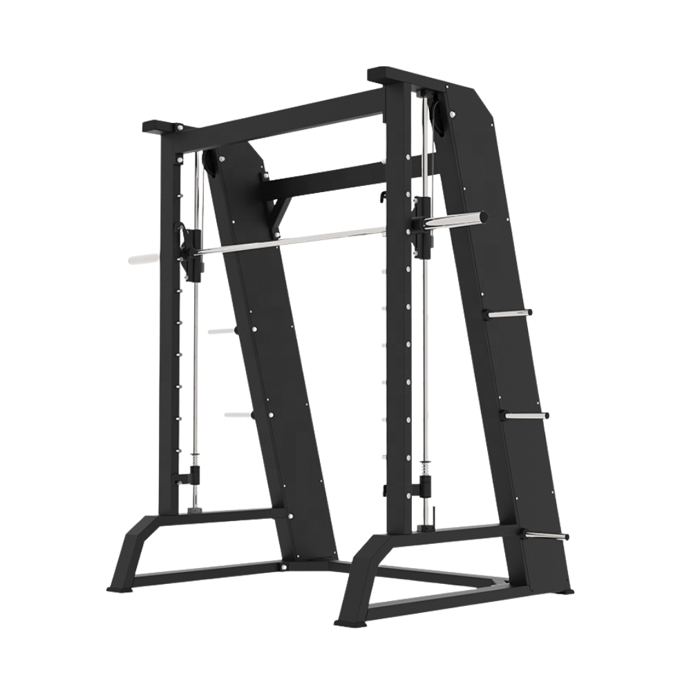 Máquina Smith diseñada para entrenamientos de fuerza con barra guiada para mayor seguridad.